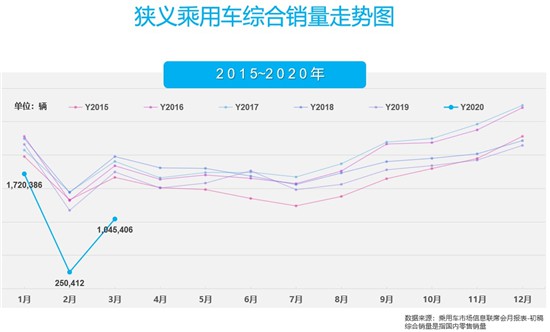 1季度,受春节假期大幅提前及疫情叠加冲击,国内狭义乘用车累计销量为3014399辆,同比跌幅40.8%;但3月车市已现明显复苏势头,共售出狭义乘用车1045406辆,环比猛增317.5%,同比下滑40.4%,恢复至接近同期6成水平。