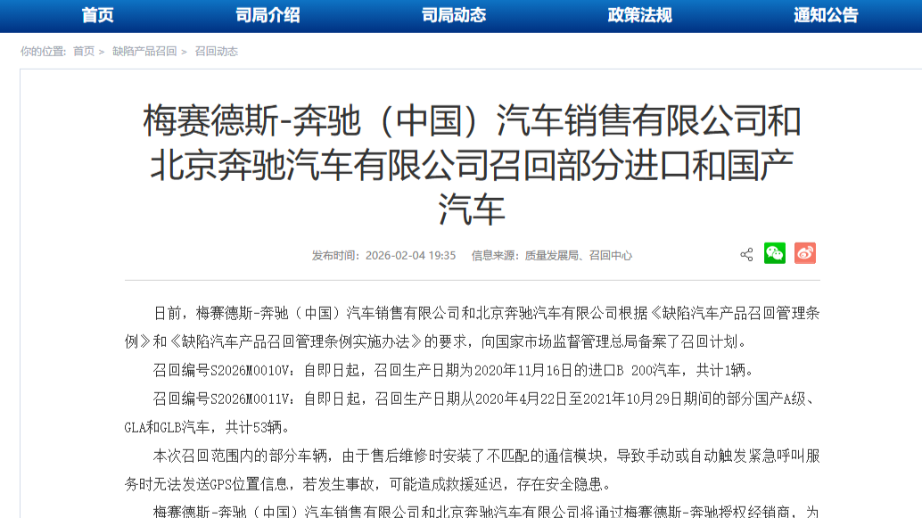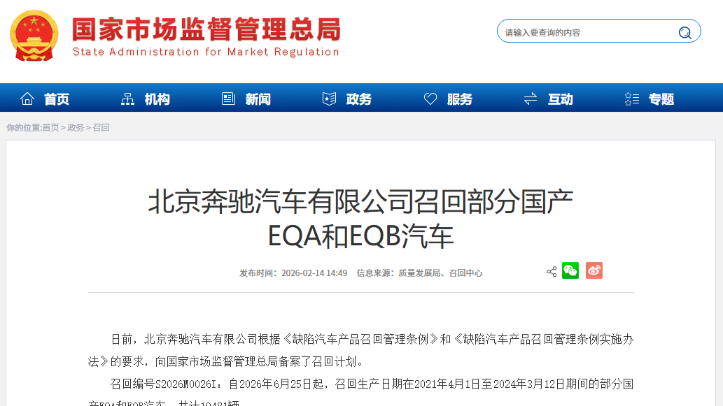 有起火风险,19481辆国产奔驰EQA和EQB汽车被召回