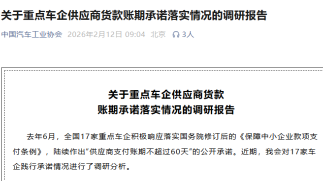 中汽协:绝大多数重点车企已把供应商货款账期压缩至60天内