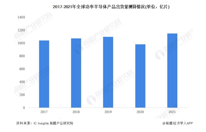 近几年来,全球功率半导体出货量持续上升,在2020年受疫情影响,经历了短暂停滞后,又在2021年销售规模又迅速回升。