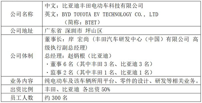 丰田与比亚迪将通过开发和普及受消费者喜爱的纯电动车,努力满足消费者多样化的需求,同时为中国的环境改善贡献力量。