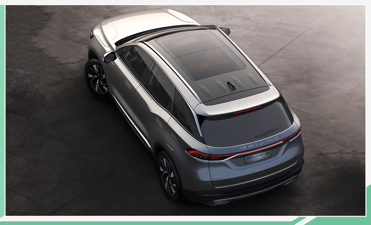 车身侧面,BEIJING-X7车身线条饱满有型,曲面的腰身设计也让新车充满了肌肉感。此外,新车还配有目前十分流行的悬浮式车顶以及隐藏式门把手,整体看起来炫酷不少。车身尺寸方面,新车的长宽高分别为4,710×1,892×1,715毫米,轴距为2,800毫米。