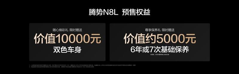 限时预购,尊享万元专属礼遇!立即预订,即可获赠价值10000元的双色车身焕彩礼,以及价值5000元的基础保养。机会难得,不容错过!