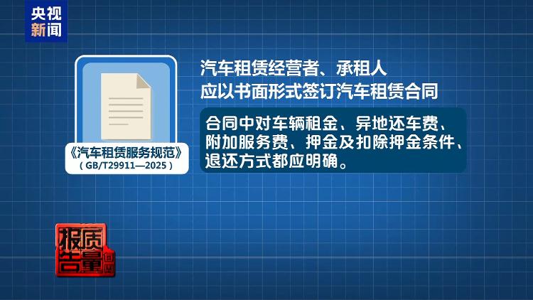 针对租车市场存在的突出问题,《汽车租赁服务规范》国家标准于今年11月1日起正式实施。新国标在合同签订、押金管理、网络平台审核等方面提出了更严格要求。