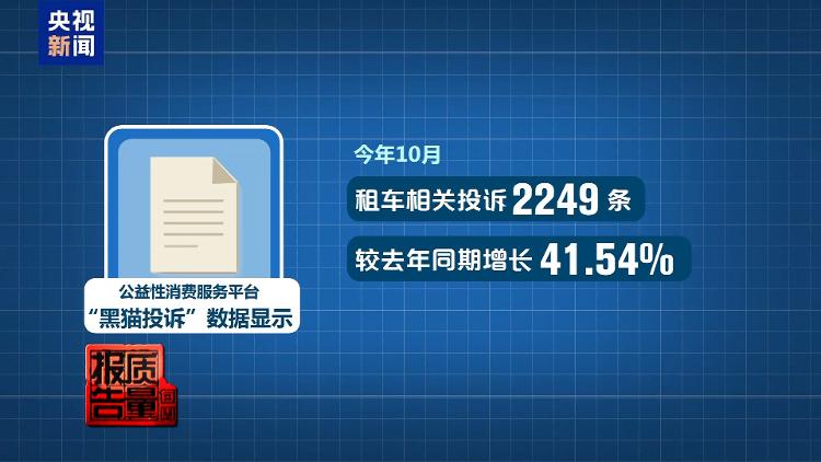 记者了解到,随着租车消费火热,近年来租车纠纷时有发生,公益性消费者服务平台黑猫投诉的分析数据显示,仅今年10月就有2249条投诉,较去年同期增长了41.54%。主要投诉商家涉及滴滴、哈罗、拍小租,一嗨租车和神州租车。