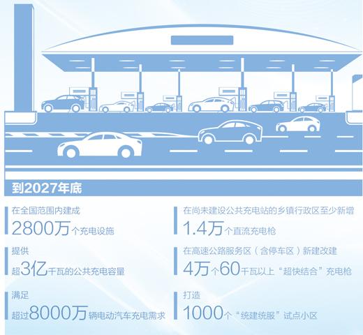 充电设施作为新能源汽车产业的关键支撑,其服务能力直接影响消费者的购买信心。国家发展改革委等部门日前联合印发《电动汽车充电设施服务能力“三年倍增”行动方案(2025—2027年)》,提出到2027年底,在全国范围内建成2800万个充电设施,提供超3亿千瓦的公共充电容量,满足超过8000万辆电动汽车充电需求,实现充电服务能力的翻倍增长。