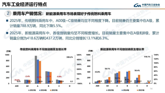细分市场来看,新能源乘用车的表现远超传统燃油车。A级和B级新能源车型成为主流,累计销量分别为418.6万辆和437.2万辆,同比分别增长13.1%和6.3%。
