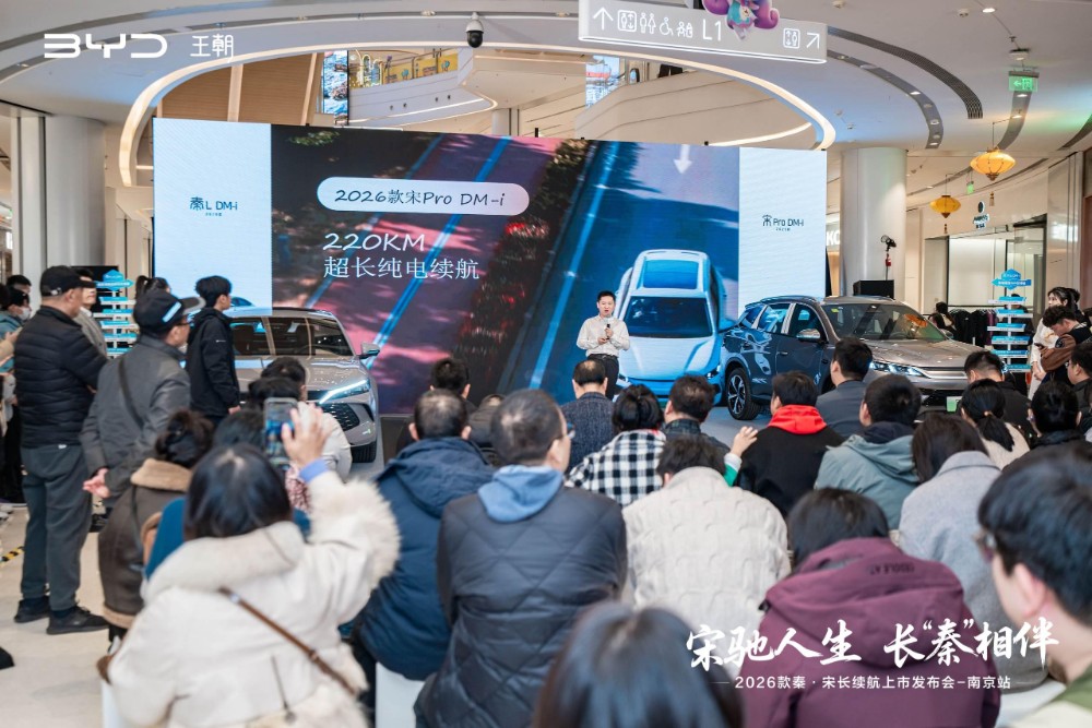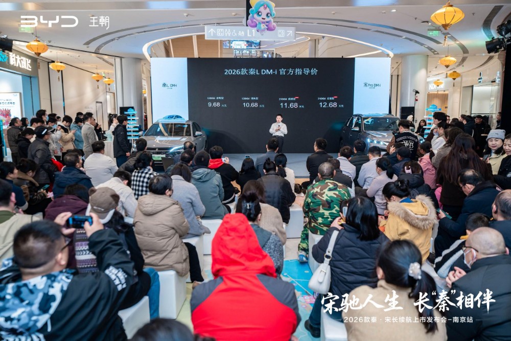 1月17日,“宋驰人生 长‘秦’相伴——2026款秦·宋长续航上市发布会·南京站”在南京江宁龙湾天街启幕。2026款秦L DM-i、秦PLUS DM-i、宋Pro DM-i联袂登场,以长续航为共同核心,在不同产品定位中形成互补,覆盖家庭出行从日常烟火到诗与远方的每一种可能,诠释“和而不同,美美与共”的守护。