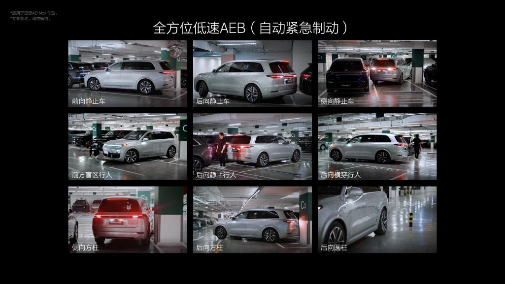 二是AEB自动紧急制动。理想汽车AEB融合了激光雷达和BEV大模型,具备更强大的碰撞预警与紧急制动功能,能力覆盖了更多极限场景,保护车内家人和其他交通参与者的安全。AEB测试项目涵盖快递车、外卖车、老头乐等横穿、逆行等场景等典型中国道路场景,不仅满足法律法规要求进行AEB功能开发,更基于用户群的实际用车场景和需求为用户带来真实的价值。面对众多高难度极限场景,理想汽车更不断突破安全上限,首次将AEB激活速度拓宽到全速域,首次在城市路口的多方向人车混行场景提供AEB安全,行业首发高速上全黑夜无路灯120公里每小时AEB刹停,行业首发雷达视觉融合的三轮车、异形车AEB等。