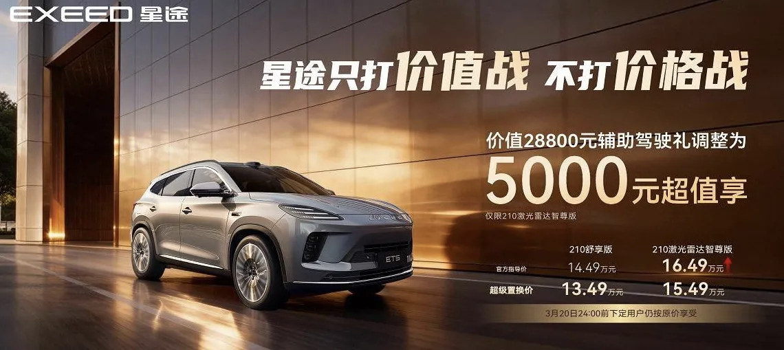 3月5日,奇瑞旗下星途宣布ET5高配版涨价5000元,调整后售价16.49万元。该车去年11月上市,两款车型原价14.49万、15.99万,高配版曾免费提供智驾功能,如今不再免费,需花5000元,购买原价28800元的智驾礼包。